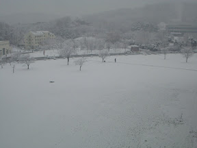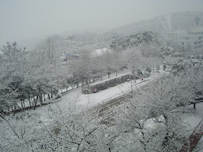 Au niveau du Baseball, je me suis fait recruté par une équipe du KAIST pour jouer dans la ligue qui débute demain. Le premier match contre 바다사나이 (Badasanai) de demain a néanmoins été annulé pour cause de chutes de neige importante hier soir et pendant la nuit. C'est sympa de voir de la neige un peu, ca faisait longtemps !enfin pas pour ceux qui ont été coincés sur 울릉도 (Ulleungdo)mais pour moi oui ! Donc au final, je me fais recruter pour jouer dans une bonne équipe de baseball, ça fait bien plaisir ! J'ai hâte de commencer les matches !